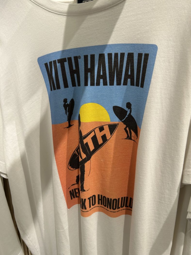 アパレルラインでは、KITHロゴと「ALOHA」の文字を組み合わせた「Aloha Tee」が不動の人気を誇る。また、伝説的なサーフムービー『The Endless Summer』にインスパイアされたグラフィックTシャツも外せない。ハワイの夕日や波を感じさせるヴィンテージ調のデザインは、旅の記憶を刻む一枚として最適だ。その他にもキーホルダー、ステッカー、キャップ、過去にはサーフボードまで、アパレル以外のエクスクルーシブな品揃えも充実している。